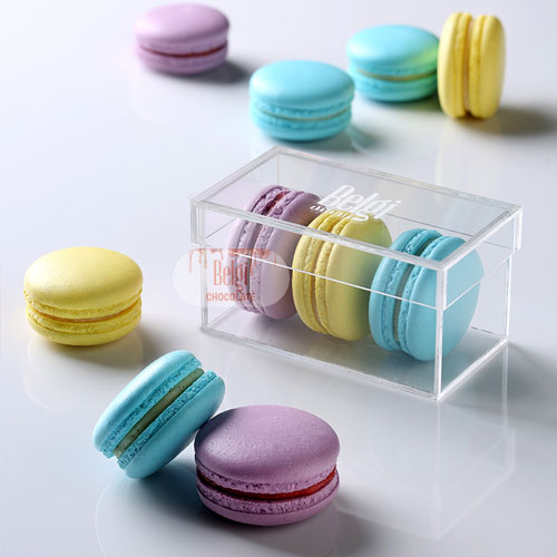 The ingredients of macarons include strawberry, chocolate and pistachio fillings.